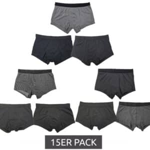 Die Boxershorts kommen im 15er Pack, und ihr könnt aus drei Farbvarianten wählen. Die Qualität überzeugt ebenso: OEKO-TEX Standard 100 zertifiziert und hergestellt aus einer angenehmen Mischung aus 95% Baumwolle und 5% Elasthan. Viel Spaß und Tragekomfort wünschen wir euch mit den neuen Boxershorts. 🙂