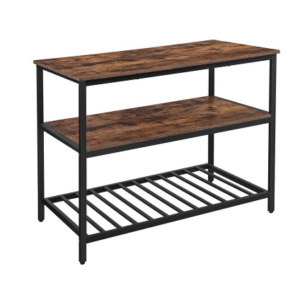Die Arbeitsfläche mit 120 x 60 cm bietet euch genügend Platz, um Teig auszurollen oder andere kulinarische Projekte anzugehen. Dank der robusten Konstruktion mit melaminbeschichteten Holzwerkstoffregalablagen und einer stabilen Struktur aus mattschwarzem Stahl, die jeweils bis zu 30 kg tragen können, müsst ihr euch keine Sorgen machen, dass das Regal unter der Last eurer Küchenutensilien zusammenbricht.