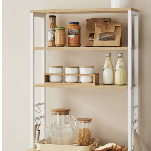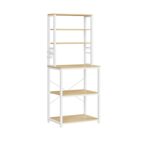 Mit vier Ablagen bietet es genug Raum, um häufig genutzte Geräte wie Kaffeemaschinen und Toaster griffbereit zu halten.
