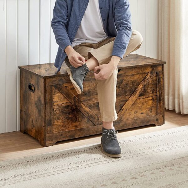 Die Sitzbank ist aus robusten Holzspanplatten gefertigt und bis zu 100 kg belastbar. So kannst du dich bequem hinsetzen, um deine Schuhe anzuziehen oder einfach eine kurze Pause einzulegen. Die stabile Konstruktion sorgt dafür, dass du lange Freude an diesem Möbelstück haben wirst.