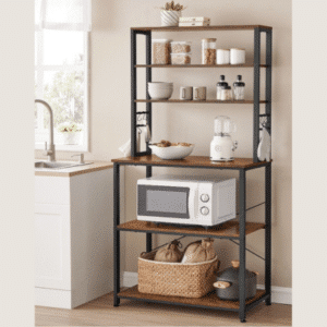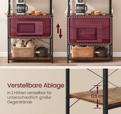 - [Solide Konstruktion] Dank der Kombination aus robustem Stahlrahmen und langlebigen Spanplatten ist dieses Standregal stark, solide und hält Ihre Mikrowelle problemlos aus