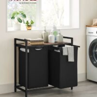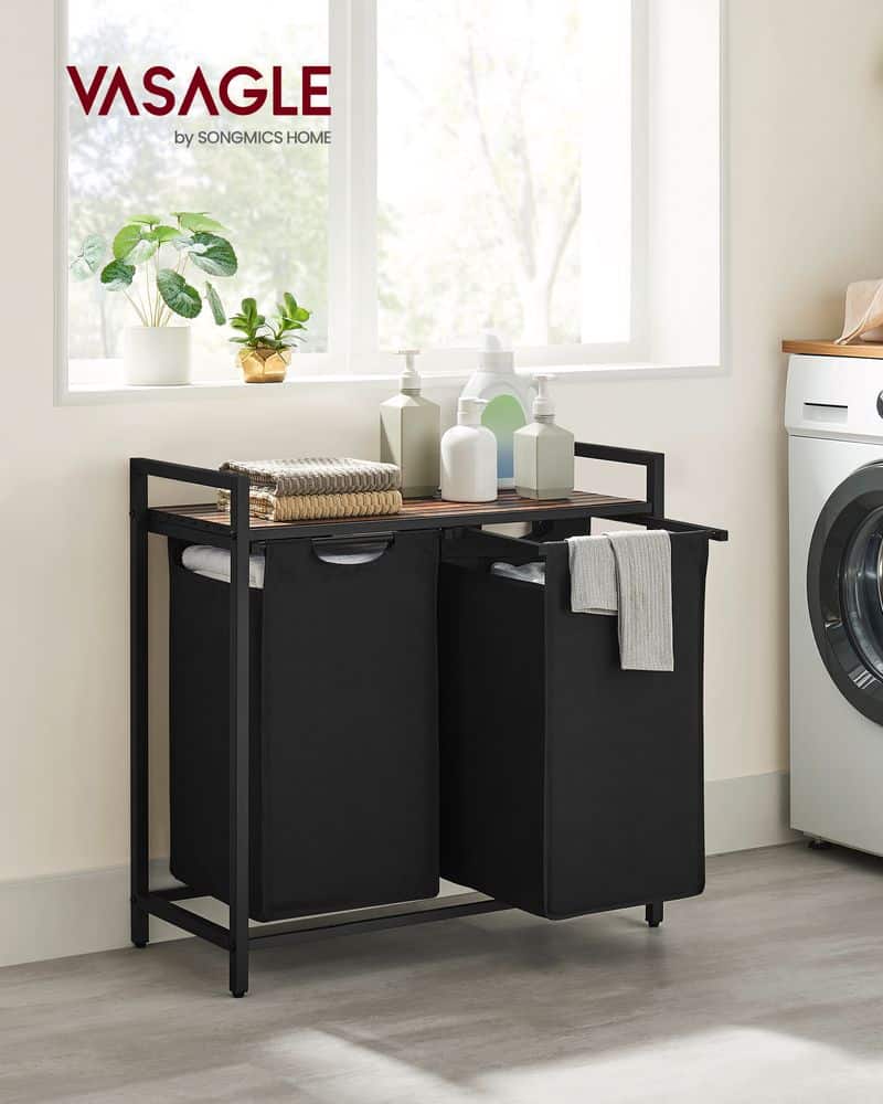 🧺 VASAGLE Wäschesammler mit Ablage (in schwarz, mit zwei Fächern)