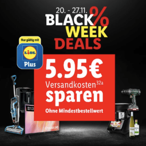 Bäm! Vom 19. bis zum 27. November 2023 könnt ihr im Lidl-Onlineshop richtig sparen, denn die üblichen Versandkosten von 5,95 € fallen weg! Und das ganz ohne Mindestbestellwert!
