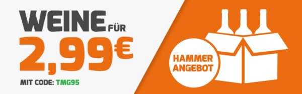 Bei Weinvorteil gibt es gibt jetzt ein paar Weine für nur 2,99€. Wir haben ein paar Highlights für euch aufgelistet, damit euch auch ja nichts entgeht. Insgesamt stehen 8 verschiedene Weine zur Auswahl. Auf den Preis kommt ihr mit dem Gutschein „TMG95“ und er Mindestbestellwert beträgt 12 Flaschen!