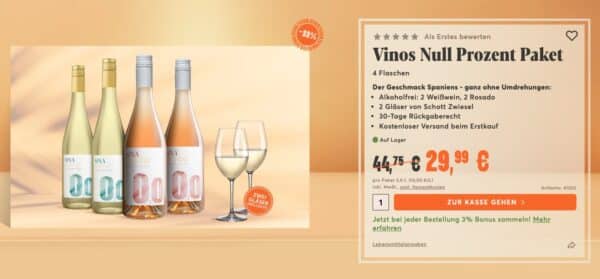 Wenn ihr mal eine Pause von Alkohol braucht oder einfach einen gemütlichen Abend mit Freunden genießen wollt, ohne auf ein gemütliches Glas Wein verzichten zu müssen, könnte das Vinos Null Prozent Paket interessant für euch sein.