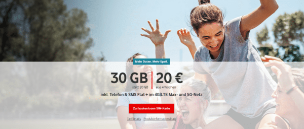 Abgerechnet wird alle 4 Wochen, der Prepaid-Tarif ist logischerweise ohne Laufzeit und kann daher jederzeit gekündigt werden. Die optimale Gelegenheit, um mal das Netz zu testen! Mittlerweile kann man sogar das 5G Netz von Vodafone ohne Aufpreis nutzen – ein 5G-fähiges Endgerät vorausgesetzt natürlich.