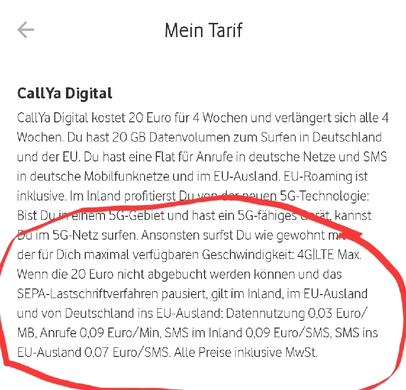 Du hast im CallYa Digital volle Flexibilität und keine Vertragsbindung. Über die MeinVodafone App kannst Du die Zahlung Deines Tarifs jederzeit pausieren, wieder aktivieren oder die Bezahlmethode ändern. Außerdem kannst Du individuell bei Bedarf aufladen. Das Schöne: Auch wenn Du Deinen Tarif pausiert hast, kannst Du angerufen werden – bis zu 15 Monate lang…"