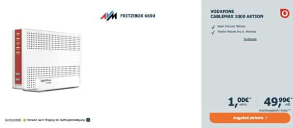 [Vorbei]Vodafone Cable Max (1000 Mbit/s) für dauerhaft 49,99€ mtl. + AVM FRITZ!Box 6690 + Fritz Repeater 2400 + 175€ Bonus