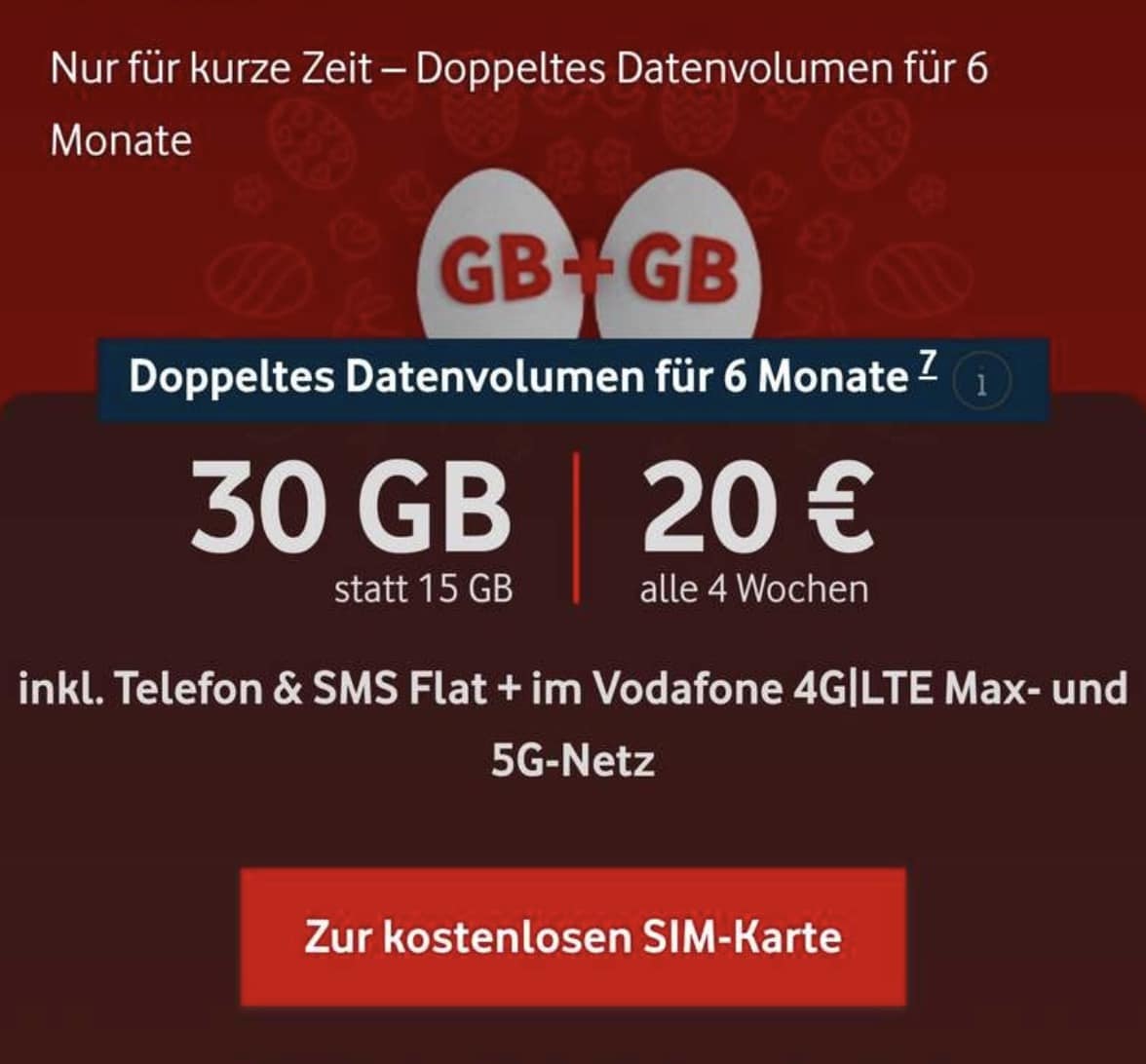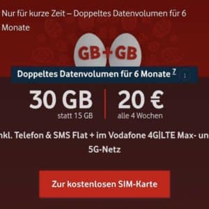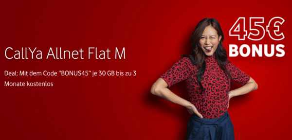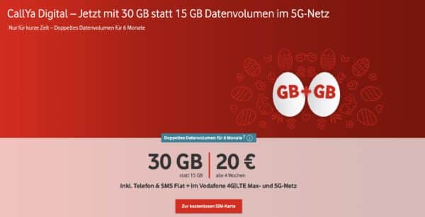 [3 Monate GRATIS] 🚀 30GB 5G Vodafone Allnet CallYa Prepaid (300 Mbit/s, mtl. kündbar) + 10€ Wechselbonus