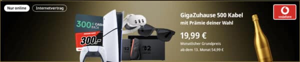 😍 Nintendo Switch 2 / PlayStation 5 für 1€ | 300€ Cashback 😎 Vodafone GigaZuhause 500 Kabel Internet