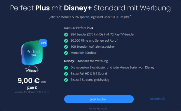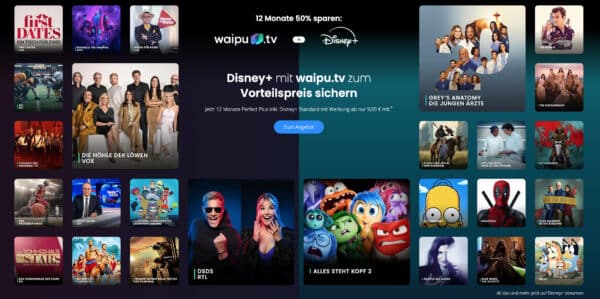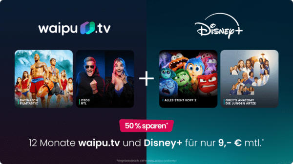 TOP 🔥 1 Jahr waipu.tv Perfect Plus + Disney+ für 9€ mtl. (statt 17,99€ mtl.)