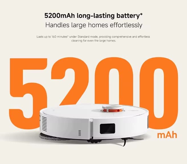 Der Reinigungsroboter bietet mit 7.000 Pa eine starke Saugleistung und arbeitet dank seines 14,4-V-Akkus bis zu 160 Minuten am Stück. Er kann saugen, wischen oder beides kombinieren und erkennt Teppiche automatisch. Für eine präzise Orientierung nutzt er Laser-Kartierung, Kamera, Hindernis- und Treppenerkennung sowie individuell einstellbare Sperrzonen.