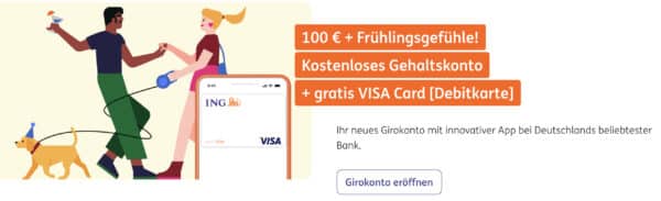 Das Girokonto der ING ist eines der beliebtesten Konten in Deutschland. Aktuell offeriert die ING 50€ 200€ Neukundenbonus für alle, welche mindestens 2 aufeinanderfolgende monatliche Geldeingänge über mindestens 1.000 Euro (die Summe darf auch in mehreren Teilbeträgen eingehen) in den ersten 4 Monaten haben.