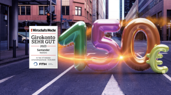 Ein komplett kostenloses Girokonto? Klingt fast zu gut, um wahr zu sein – doch mit dem Santander BestGiro ist genau das möglich. Und als zusätzliches Highlight winkt aktuell ein 150€ Willkommensbonus!