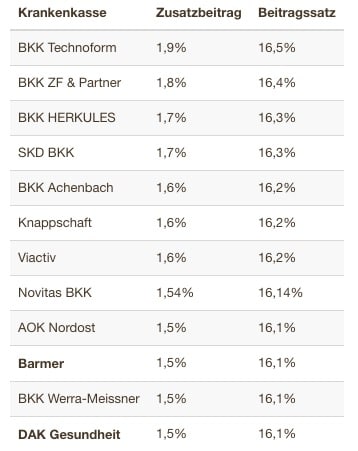 - angenommen die aktuelle GKV ist die Techniker mit einem Zusatzbeitrag von 1,2%
