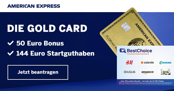 - 144€ Startguthaben für American Express Gold Card