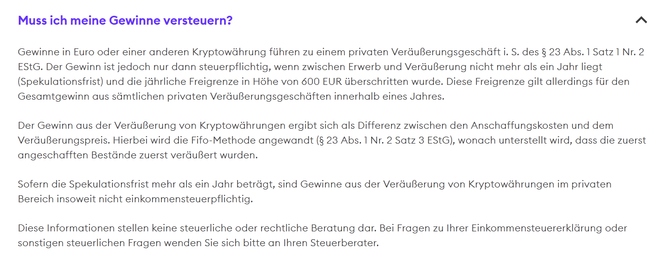 Hierbei erhöht sich die Haltefrist des steuerfreien Gewinns auf 10 Jahre. Ob ihr euch also aufgrund des Versprechens von ca. 5% Rendite pro Jahr umgehend ans Staken macht, solltet ihr euch doppelt überlegen, sofern ihr in den nächsten Jahren die Kryptogewinne steuerfrei erhalten wollt.