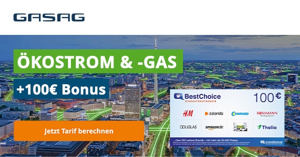 - 💥 Strom & Gas bei GASAG + 100€ Bonus