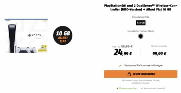Falls ihr ein Auge auf die PS5 geworfen habt: Bei Klarmobil gibt es nur für kurze Zeit die Klarmobil Allnet-Flat mit 10GB LTE für 25€ im Monat und die Sony PlayStation 5 Disc samt 2 Controllern für 100€ dazu. Günstiger ging es bisher nicht, zumal Alternativen im Telekom-Netz rar sind. Zumindest wenn die Grundgebühr entsprechend niedrig ausfallen soll. Schaut also mal rein – nur gültig solange der Vorrat reicht: