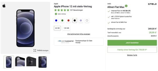 🍏 Apple iPhone 12 für 269€ + 40GB LTE Vodafone Allnet für 29,99€ mtl.