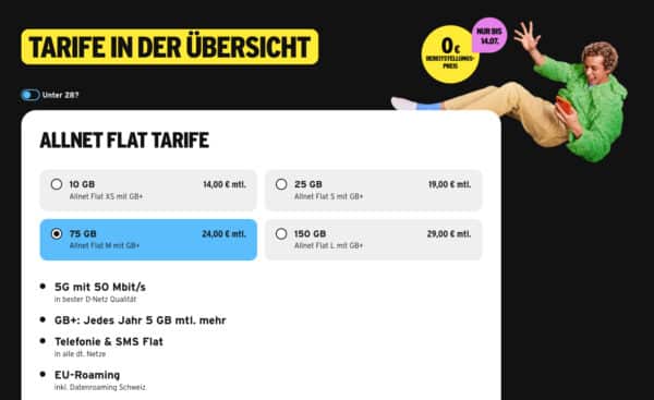 • 24€ mtl. Grundgebühr für 75GB LTE