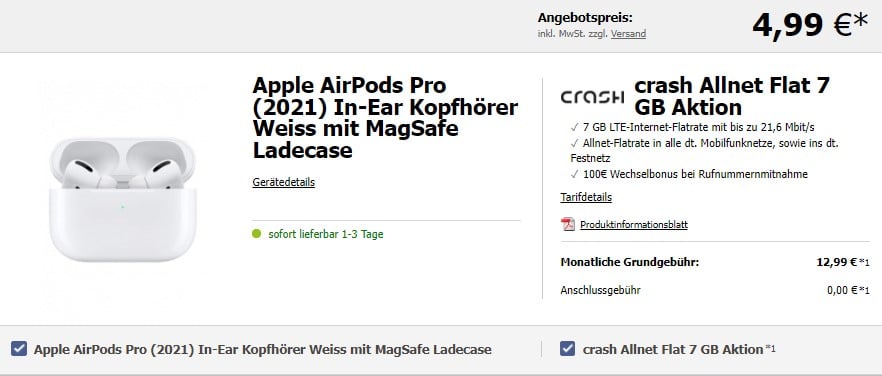- + 4,99€ für die Apple AirPods Pro (2021 mit MagSafe)