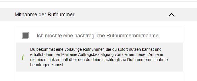 1) Die Rufnummernmitnahme klappt in der Tat nicht vollständig im Bestellprozess, aber du kannst sie im Bestellprozess bereits anstoßen, siehe Screenshot. Die weiteren Schritte erfolgen dann wie dort beschrieben ist im Nachgang.