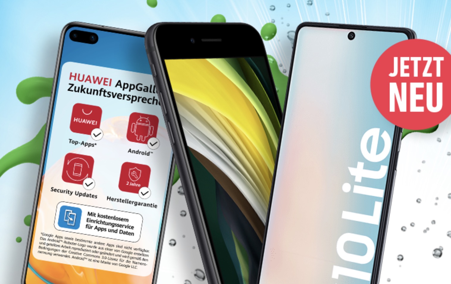 Preislich tut sich bei allen Handy nicht viel. Je nachdem welches Modell ihr auswählt, kommt ihr auch bei dem Galaxy S10 und dem iPhone SE sehr gut aus der Sache raus (eff. unter 4€ / Monat). Allerdings hat Huawei den großen Vorteil der kostenlosen Smartwatch sowie der Waage, was den Tarif dann im Endeffekt kostenlos macht und euch sogar noch eine Ersparnis im Vergleich bietet. Hier die Beispielrechnung zum P40: