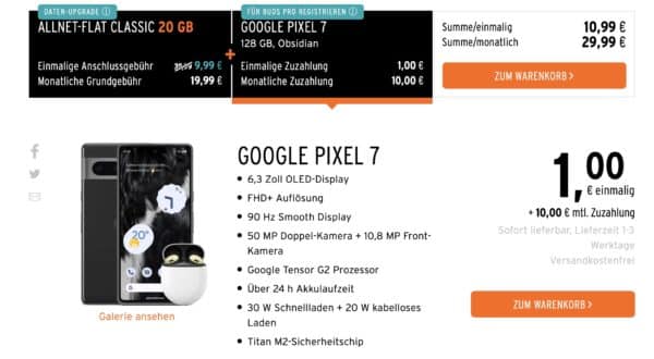 🔥 Google Pixel 7 für 49,95€ mit Vodafone Otelo Allnet mit 30GB LTE + 50€ Bonus