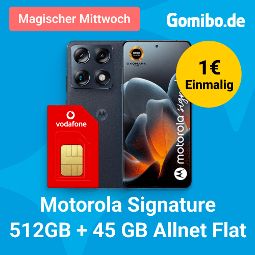 Leute, aktuell bekommt ihr bei Gomibo jetzt einen Deal mit dem Vodafone – Smart Lite Tarif: Die Grundgebühr beträgt 34,99€ im Monat und es gibt das brandneue Motorola Signature 512GB für 69€ dazu.