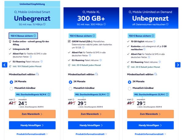 [TOP] 🔝 o2 Mobile Unlimited Smart nur 24,99€ mtl. – monatlich kündbar | 150€ Bonus!
