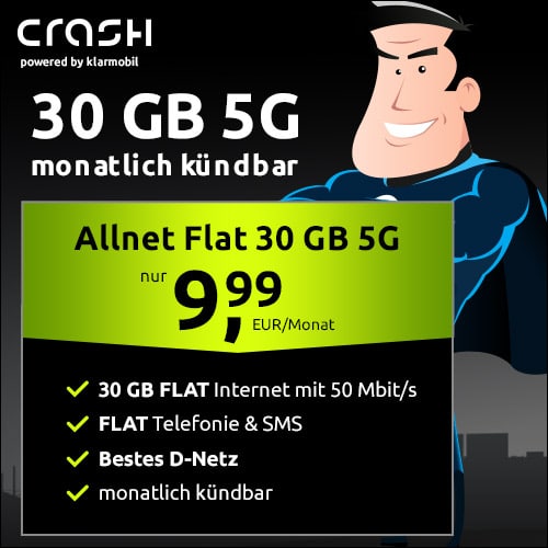 Zuletzt hatte Crash einen starken Tarif im Angebot. Nun wird eine starke Allnet-Flat mit mehr Datenvolumen raus gehauen, die ebenfalls im besten Netz Deutschlands, der Telekom, funken. Die Anschlussgebühren werden euch auch erlassen!