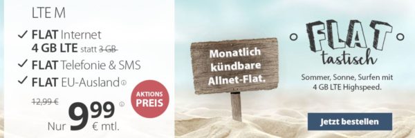 Wie angekündigt gab es ja bis zum 10.7. noch den 3GB Tarif für 8,99€ bei PremiumSIM. Diese Aktion wurde jetzt endgültig beendet, aber es geht direkt weiter mit den Angeboten. Als nächstes bekommt ihr nun sogar 1GB mehr. Also eine Allnet-Flat inkl. SMS und 4GB LTE im o2-Netz für 9,99€ mtl. Weiterhin kann man den Vertrag ohne Laufzeit abschließen, d.h. er ist jederzeit monatlich kündbar! Ein P/L-Tipp im Tarifbereich, falls ihr eh noch auf der Suche seid: