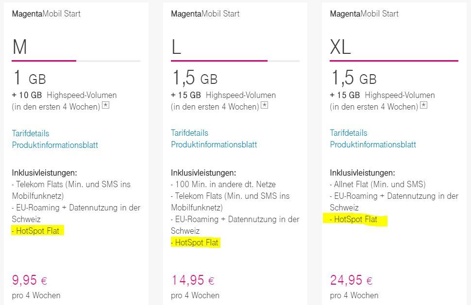 Stefan S. 15.11.2017, 08:22@alf4711 & Ric: Wenn ihr die anderen Telekom Preise kennen würdet, wärt ihr vorsichtig mit solchen Aussagen 😀 Im Ernst: für 10 bzw. 15€ im Monat ist das Paket schon ganz fair. Und wenn bspw. der Partner auch eine SIM hat, kann man kostenlos telefonieren… es gibt für alle Bedürfnisse eine Zielgruppe