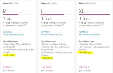 Prepaid D1: Magenta Mobil Start Tarife inkl. LTE und HotSpot-Flat