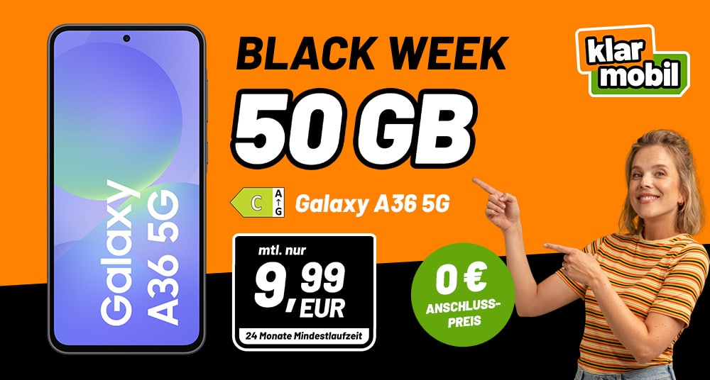 [Vodafone + 5G] Samsung Galaxy A36 für 9,99€ + Klarmobil Allnet mit 50GB 5G für 9,99€ mtl. (keine AG!)