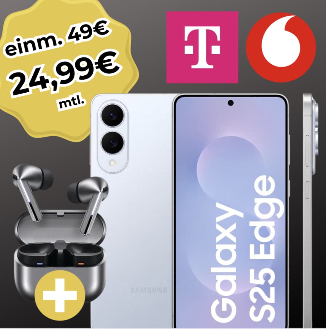 [Vorbei][229€ Ersparnis] 🤯 Galaxy S25 Edge 512GB + Buds3 Pro für 49€ mit 20GB TELEKOM 5G für 24,99€ mtl. + 50€ Bonus | Auch Vodafone oder o2!