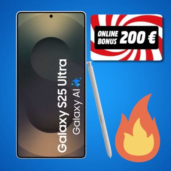 Das Samsung Galaxy S25 Ultra bekommt ihr aktuell ebenfalls zu sehr guten Konditionen bei MediaMarkt mit dem o2 Mobile Unlimited Max Tarif. Der Tarif beinhaltet unendlich (!) mobile Daten (LTE- & 5G-fähig) für 39,99€ mtl. Das Samsung Galaxy S25 Ultra (mit 256GB Speicher) bekommt ihr dabei für eine Zuzahlung von nur 129€.