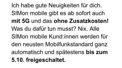 quristen 09.07.2024, 06:46So – mit den 3GB mehr hat mich das nun überzeugt und ich wechsele von congstar zu Simon. Gerade die kostenlose 5G Option hatte mich die ganze Zeit schon gereizt! Wen es interessiert: den Gutschein Simon10 kann man nicht mit der Werbung von Freunden kombinieren.