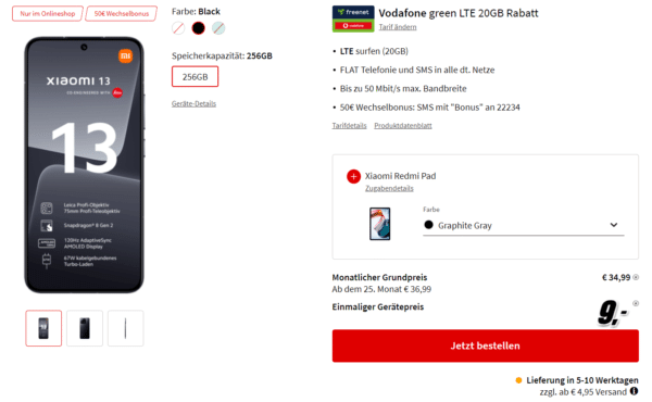 Eff. 0,11€ 🥳 Xiaomi 13 256GB für 111€ + Redmi Pad (128GB) + 20GB LTE Telekom Allnet für 34,99€ mtl. + 50€ RNP-Bonus