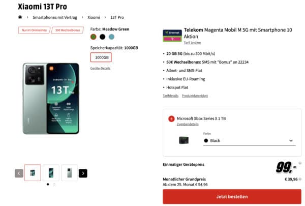 [Vorbei][Eff. GRATIS!] 🔥📲 Xiaomi 13T Pro mit Xbox Series X für 99€ im original Telekom Magenta mit 20GB 5G