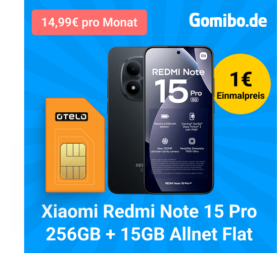 Ihr wollt ein neues Smartphone und habt ein Auge auf das GXiaomi Redmi Note 15 Pro geworfen? Dann hat Gomibo jetzt einen coolen Deal für euch. Ihr bekommt das Redmi Note 15 Pro für einmalig 79€ 1€. Dazu habt ihr einen Tarif mit 15GB 5G mit einer Allnet Flat im Vodafone Netz für 14,99€ mtl.