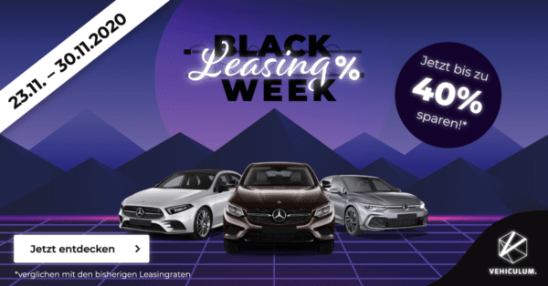 Das sind mal richtig gute Leasing Deals: Vehiculum nimmt ebenfalls an der Black Week teil und haut euch ein paar Knaller raus, die sich wirklich nicht verstecken müssen. Besser geht es aktuell nicht, wenn man sich ein neues Auto auf eine gewisse Zeit mieten möchte! Auch hochwertige Autos sind diesmal zu sehr guten Konditionen zu haben. Schaut unbedingt mal rein: