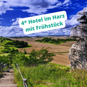 Mit Travelcircus könnt ihr jetzt richtig toll im Harz Urlaub machen, in einer echt interessanten Gegend: Das 4* Hotel MythenResort Heimdall liegt in Thale, und dort gibt es u.a. den Hexentanzplatz, das Bodetal, die Roßtrappe und überhaupt sehr schöne Wanderwege. Wer eher bequem ist / Knieschmerzen hat, der kann auch Seilbahn / Sessellift fahren…) Auch für die Besichtigung der Teufelsmauer (Dealbild) ist das Hotel ein toller Ausgangspunkt! 🙂