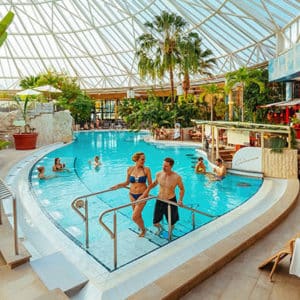 - Entflieht dem Alltag in einem perfekt geschaffenen Palmenparadies in NRW. Hier könnt ihr eure Seele zur Ruhe kommen lassen und im Wasser an der Poolbar Cocktails trinken.