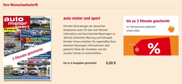 - Gratis 3 Ausgaben „Auto Motor und Sport“
