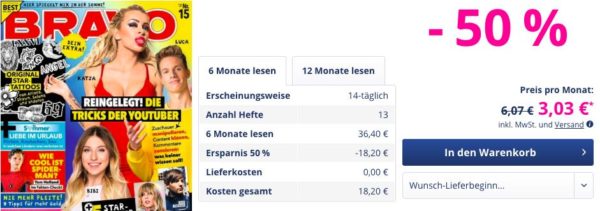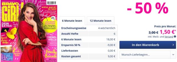 • Bravo Girl Abo – 6 Monate für 9,00€