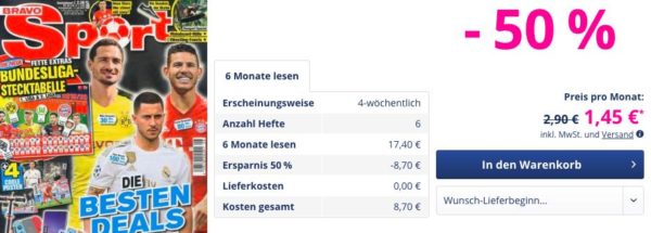 • BRAVO Sport Abo – 6 Monate für 8,70€