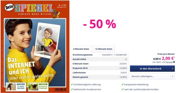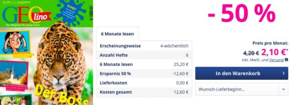 Braucht ihr Lese-Stoff für die Kids? Abo-einfach.de hat wieder mal einige interessante Jahresabos für Kinder und Jugendliche im Angebot. Die meisten Abos laufen 6-12 Monate und würden sich danach verlängern, wenn ihr nicht rechtzeitig kündigt. Das zweite Jahr würde dann allerdings teurer werden. Daher solltet ihr ggfs. an eine rechtzeitige Kündigung denken. Folgende Magazine sind aktuell dabei (Achtung, es sind wirklich einige 😲) :