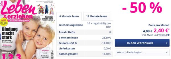 • Leben & erziehen Abo – 6 M. für 14,40€